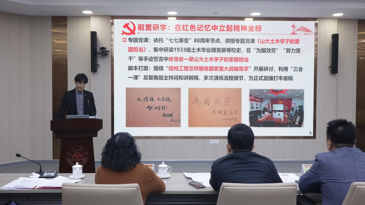 近日,山東大學(xué)第二屆研究生黨支部主題黨日案例大賽決賽落下帷幕。土建與水利學(xué)院結(jié)構(gòu)研究生第三黨支部報(bào)送的案例《從紅色記憶到強(qiáng)國使命:新時(shí)代科研報(bào)國精神的歷史溯源與學(xué)術(shù)傳承》榮獲大賽特等獎(jiǎng),支部報(bào)告人、2023級結(jié)構(gòu)工程碩士研究生朱泉宇獲評本次大賽“十佳報(bào)告人”。