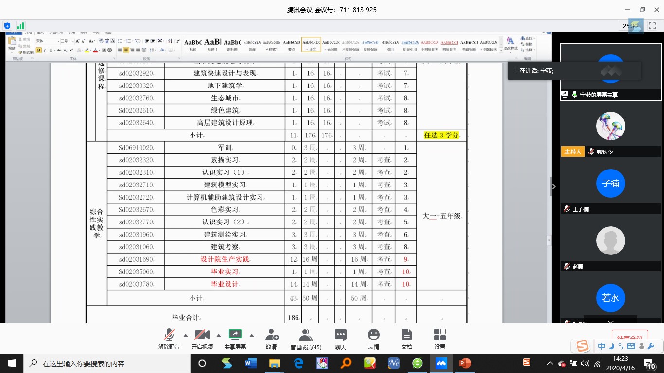 4月16日下午2點, 為了解學生目前關(guān)于專業(yè)學習的問題,2019級建筑學系召開了線上師生座談會。出席會議的有建筑系全體教師和2019級全體學生。建筑學系主任寧荍老師主持本次會議。