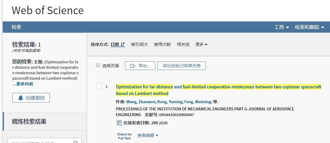近日,山東大學土建學院工程力學專業(yè)本科生汪展文和董禹銘在英國《航天工程期刊》(Proceedings of the Institution of Mechanical Engineers, Part G: Journal of Aerospace Engineering)發(fā)表了題為《基于Lambert方法的共面航天器遠程協(xié)同交會的優(yōu)化》的論文,并被SCI收錄。