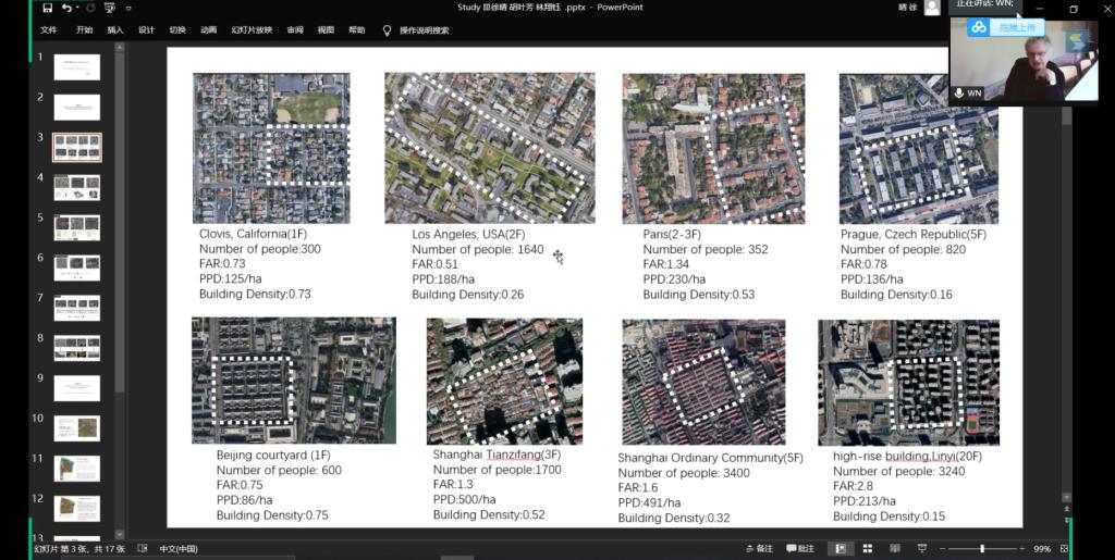7月6日,Walter Nägeli教授通過ZOOM網(wǎng)絡(luò)會議正式開始了暑期學(xué)校授課。作為本課程的開題,Nägeli教授就密度的概念、世界城市發(fā)展歷程中的密度問題及理論發(fā)展進行了相關(guān)講授,隨后,建筑學(xué)系的趙康老師進行了“Design and Research”(設(shè)計與研究)為題的講座,對研究的概念、相關(guān)方法步驟及與設(shè)計的關(guān)系進行了講解。7月7日,Nägeli教授做了以“The Issue of Density”(密度問題)為題的主旨演講,并與趙康老師一同進行了項目任務(wù)書的詳細解讀,為同學(xué)們下一步的研究學(xué)習(xí)指明了方向。