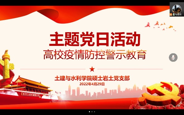 為緩解焦慮情緒,凝集抗疫合力,近期,土建與水利學(xué)院各碩博黨支部以線上線下相結(jié)合的方式分別召開(kāi)主題黨日活動(dòng)。