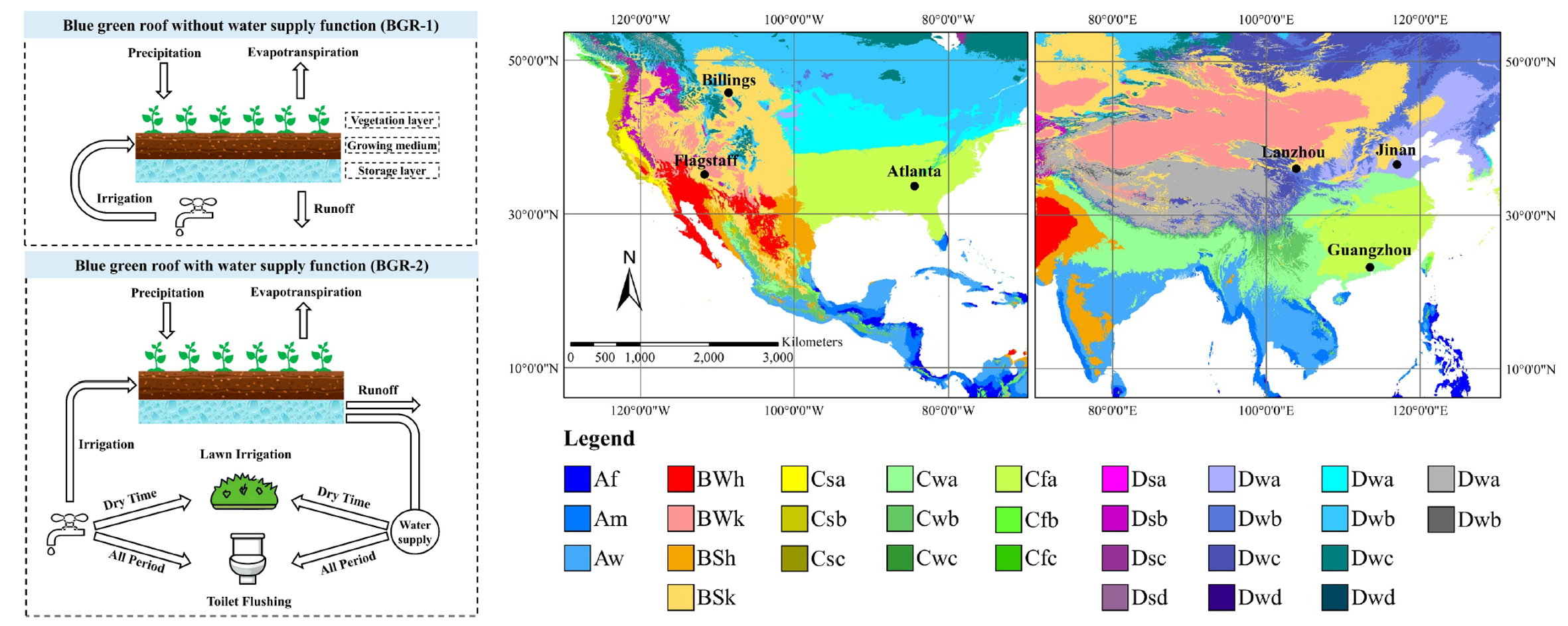 圖2. 藍(lán)綠屋頂系統(tǒng)與研究區(qū)示意圖