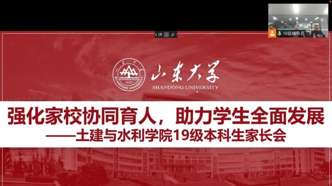 11月20日下午,山東大學(xué)土建與水利學(xué)院于線上組織召開2019級本科生家長會。本次會議由副院長張強勇,黨委副書記張強出席,2019級輔導(dǎo)員趙志強主持,2019級本科生家長參加。