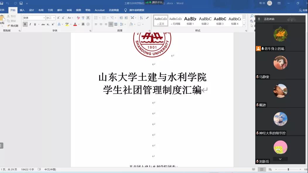 為加強(qiáng)社團(tuán)日常管理,承接社團(tuán)負(fù)責(zé)人換屆工作,1月24日,山東大學(xué)土建與水利學(xué)院文藝部完成《山東大學(xué)土建與水利學(xué)院學(xué)生社團(tuán)管理制度匯編》(以下簡稱《制度匯編》)撰寫工作,并于30日發(fā)至土建學(xué)院學(xué)生社團(tuán)骨干群學(xué)習(xí)。