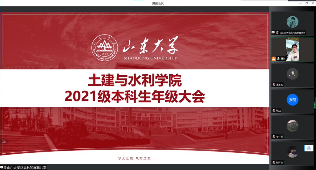 4月28日下午,山東大學(xué)土建與水利學(xué)院于線上召開2021級本科生年級大會。會議由土建學(xué)院本科生2021級輔導(dǎo)員馬震林主持,2021級全體同學(xué)參加。