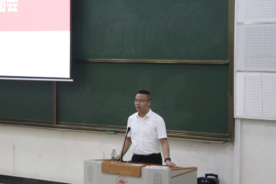 劉斌代表學院黨委致歡迎詞。他首先向新生表達了由衷的祝賀和熱烈的歡迎,隨后提出了對新生開啟大學生活的建議。其一,他指出對大學生來講學習仍是第一要務,在大學中要不斷嘗試找到適合自己的學習方法。其二,他強調(diào)人生沒有躺贏,大學是人生的新起點,不能歇一歇、停一停、等一等,面對電子產(chǎn)品的誘惑,希望同學們能夠保持自制力,以飽滿的斗志繼續(xù)奮斗。其三,同學們應該時刻保持自身發(fā)展的危機感和對知識的饑餓感,在保證專業(yè)學習的基礎上實現(xiàn)個人全方位發(fā)展。最后,他要求同學們要樹立正確的奉獻觀、奮斗觀、專業(yè)觀和安全觀,努力成為堪當民族復興重任的時代新人。