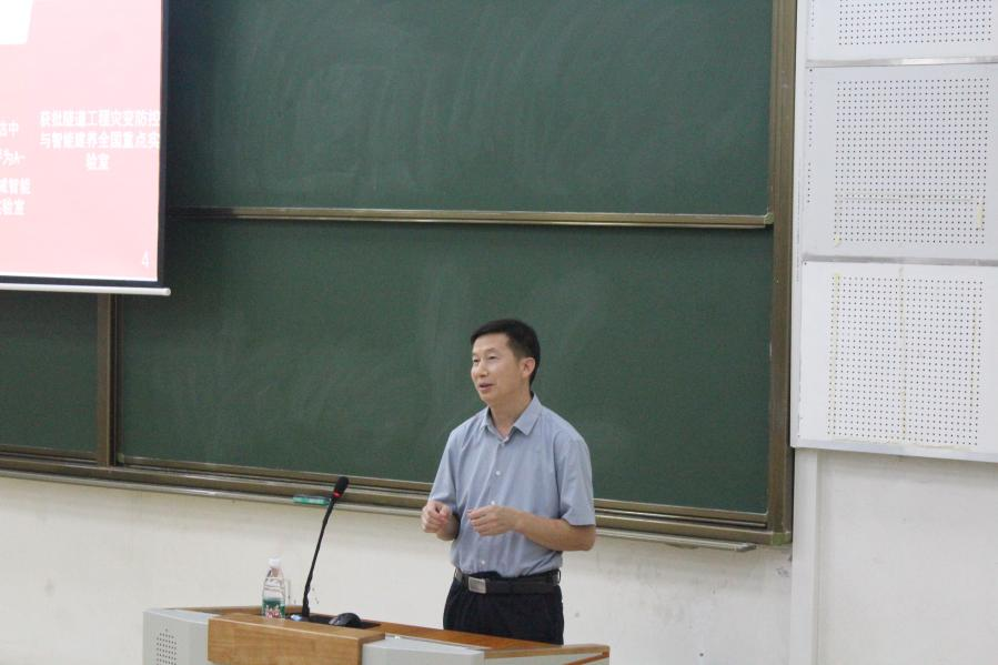 張慶松從學院的歷史、發(fā)展、特色、人才培養(yǎng)及取得的輝煌成績?nèi)胧郑蛲瑢W們簡明扼要地介紹了學院的整體情況。他著重指出,自2000年以來,學院邁入跨越式快速發(fā)展新階段,學院面貌發(fā)生了根本性變化。逐步建立起了院士引領、國際知名學者助力、中青年學者不斷涌現(xiàn)的多層次人才梯隊;創(chuàng)新了“精神引領-課程思政-人才培養(yǎng)”三位一體教育教學體系,積極探索“產(chǎn)學研賽”創(chuàng)新培養(yǎng)模式,多學科交叉融合推進“新工科”建設,創(chuàng)新人才培養(yǎng)鏈;服務國家戰(zhàn)略需求,獲批建設國家重點實驗室;緊跟時代脈搏,拓展國際交流合作廣度深度,聚焦培養(yǎng)深具國際化視野的創(chuàng)新拔尖人才。他強調(diào),土建與水利學院的發(fā)展為土木學科杰出人才培養(yǎng)奠定了堅實基礎,同學們在求學生涯中一定能夠獲得學院的全方位支持,在全院師生員工共同努力下,相信同學們一定有著輝煌的明天。