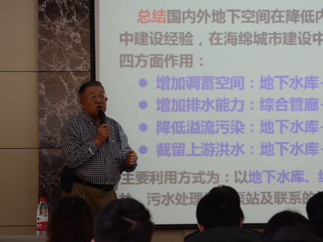 王院士首先從五個(gè)方面介紹了城市海綿建設(shè)頂層設(shè)計(jì)問題。他從國際城市水問題治理出發(fā),引出城市水問題治理的中國智慧——海綿城市。接著他就科學(xué)內(nèi)涵、系統(tǒng)診斷、耦合平衡三個(gè)內(nèi)容對海綿城市進(jìn)行了簡要介紹。基于以上內(nèi)容,王院士認(rèn)為要解決診斷出的城市水問題,實(shí)現(xiàn)海綿城市的三大平衡必須采取三大基本措施:防澇體系建設(shè)、控污體系建設(shè)、雨水利用體系建設(shè)。他表明海綿城市建設(shè)的關(guān)鍵就是在該頂層設(shè)計(jì)指引下,通過一系列工程和非工程措施,實(shí)現(xiàn)城市水循環(huán)及其伴生過程與城市經(jīng)濟(jì)社會(huì)的良性互饋。此外,王院士還談到了海綿城市建設(shè)中的地下空間開發(fā)問題。隨著城市化的推進(jìn),地下空間開發(fā)是城市集約發(fā)展、內(nèi)涵發(fā)展的重要舉措,其必要性不言而喻。他以海綿城市建設(shè)地下水庫技術(shù)與建設(shè)綜合管廊技術(shù)為例,簡單介紹了地下空間開發(fā)的關(guān)鍵技術(shù)。最后王院士指出中國城市水問題具有一定的復(fù)雜性和特殊性,必須立足自身實(shí)際、運(yùn)用系統(tǒng)思維,實(shí)現(xiàn)城市良性水循環(huán),使水與人類社會(huì)相適應(yīng)。