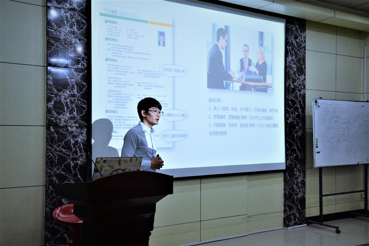 交流會(huì)正式開(kāi)始。我院13屆校友現(xiàn)任世茂集團(tuán)山東地區(qū)公司工程經(jīng)理的劉偉就整體就業(yè)形勢(shì)做出了分析,他指出目前依然存在求職需求逐年攀升、就業(yè)市場(chǎng)景氣度下滑的現(xiàn)象,希望大家放低姿態(tài)且要有危機(jī)意識(shí),同時(shí)認(rèn)清個(gè)人發(fā)展訴求。季可凡和辛愛(ài)強(qiáng)向同學(xué)們講述了自己的求職經(jīng)歷,針對(duì)如何選擇合適的企業(yè)、如何準(zhǔn)備面試等同學(xué)們比較關(guān)注的問(wèn)題,分享了自己的經(jīng)驗(yàn),并提出明確求職目標(biāo)、做好充足準(zhǔn)備、提高求職熱情的建議。即將就業(yè)于公務(wù)員(規(guī)劃建設(shè)類)工作的張雪給大家介紹了公務(wù)員考試準(zhǔn)備的技巧,并分享了關(guān)于實(shí)習(xí)、招聘信息獲取渠道來(lái)源等問(wèn)題的經(jīng)驗(yàn)。她建議大家要開(kāi)拓思路,努力尋找適合自己的工作。另外,選擇布里斯托大學(xué)攻讀博士學(xué)位的張邑塵與大家分享了雅思、托福備考方法、申博準(zhǔn)備與流程、讀博院校及導(dǎo)師的選擇等等內(nèi)容。所有嘉賓分享經(jīng)驗(yàn)后與在座同學(xué)們進(jìn)行了輕松愉快的面對(duì)面交流。