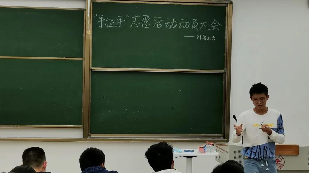 11月19日下午4時,山東大學(xué)土建與水利學(xué)院2021級工程力學(xué)班在教室舉行“手拉手”志愿活動動員大會。本次活動由班長白蕓嘉、團支書楊詩若主持,2021級工程力學(xué)班全體同學(xué)參加。