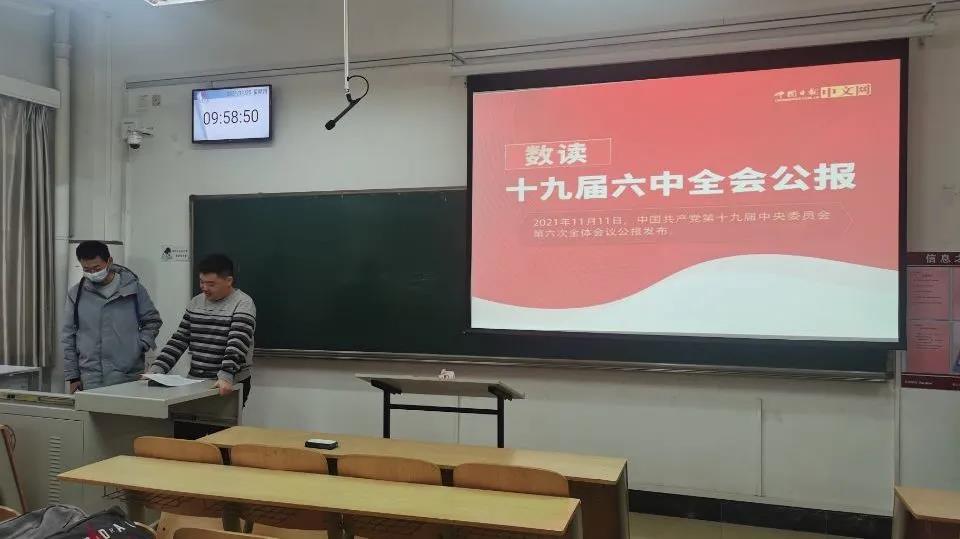 隨后,孫景樹介紹了在黨的十九屆六中全會中審議通過的《中共中央關(guān)于黨的百年奮斗重大成就和歷史經(jīng)驗的決議》的內(nèi)容細(xì)節(jié),他向同學(xué)們闡釋了“開創(chuàng)中國特色社會主義新時代”章節(jié)中“在社會建設(shè)上”和“在堅持’一國兩制’和推進(jìn)祖國統(tǒng)一上”的內(nèi)容,并重點(diǎn)強(qiáng)調(diào)了與大學(xué)生群體密切相關(guān)的“推動高等教育內(nèi)涵式發(fā)展”方面內(nèi)容以及廣受關(guān)注的解決臺灣問題的相關(guān)表述。最后,孫景樹以黨中央號召為總結(jié),鼓勵同學(xué)們以史為鑒、開創(chuàng)未來,埋頭苦干、勇毅前行,為實現(xiàn)第二個百年奮斗目標(biāo)、實現(xiàn)中華民族偉大復(fù)興的中國夢而不懈奮斗。