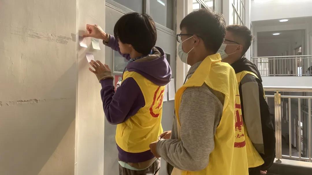 洪瑜首先為參與同學(xué)講解了關(guān)注考研學(xué)子的目的,并詳細(xì)講述了活動(dòng)開(kāi)展流程與分工。接著,洪瑜組織兩班同學(xué)在便利貼以及明信片上寫下對(duì)考研學(xué)子的祝福,部分同學(xué)還在明信片上繪制了可愛(ài)圖樣。準(zhǔn)備完畢后,同學(xué)們分別前往三號(hào)樓、八號(hào)樓自習(xí)室以及講學(xué)堂203、205考研專用自習(xí)室,將便利貼貼放在自習(xí)室門口。在此過(guò)程中,同學(xué)們時(shí)刻保持安靜,避免打擾到自習(xí)室內(nèi)認(rèn)真?zhèn)淇嫉耐瑢W(xué)。