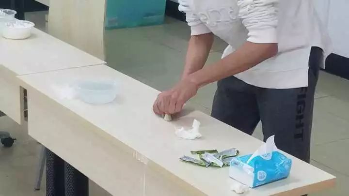 李哲園和郭彬涵從動(dòng)手實(shí)驗(yàn)出發(fā),帶領(lǐng)現(xiàn)場(chǎng)同學(xué)用淀粉和水制作了非牛頓流體,親身體驗(yàn)其獨(dú)特性質(zhì),在直接的觸摸與拍打中,使同學(xué)們對(duì)遇強(qiáng)則強(qiáng)、遇弱則弱的非牛頓流體有更深的了解。