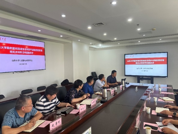 隨后,黃科院科研處副處長呂錫芝對黃科院基本情況、落實國家戰(zhàn)略部署措施及取得的成果等進行匯報介紹;土建與水利學院副院長毛德強圍繞水利工程系的發(fā)展沿革、師資概況、學科布局、平臺建設(shè)、項目與成果、人才培養(yǎng)等方面進行介紹;土建與水利學院王冀鵬教授圍繞黃河流域生態(tài)保護和高質(zhì)量發(fā)展關(guān)鍵水科學問題進行匯報,重點介紹了針對黃河流域的相關(guān)科學問題的研究進展。會議最后,雙方圍繞生態(tài)護坡、水污染探測、黃河三角洲鹽堿地治理等研究方向進行了深入探討,并提出了下一步黃河水科院與山東大學可以開展深度合作的科研方向和研究內(nèi)容。