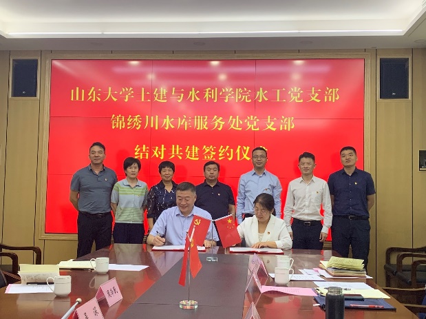 為進一步探索高校基層黨組織共建模式,促進黨建工作與業(yè)務工作的深度融合,山東大學土建與水利學院水工黨支部與錦繡川水庫服務處黨支部開展結對共建工作。9月28日下午,共建雙方在錦繡川水庫服務處舉行了支部結對共建和山東大學實習教學基地揭牌活動。土建與水利學院黨委書記劉斌、副院長韓勃、水工黨支部書記于翠松、水利系副主任王冀鵬、黨員教師代表以及濟南市水利工程服務中心副主任周澤民、副書記趙興范、錦繡川水庫黨支部書記吳深以及水庫黨員代表等參加了本次活動。會議由周澤民副主任主持。