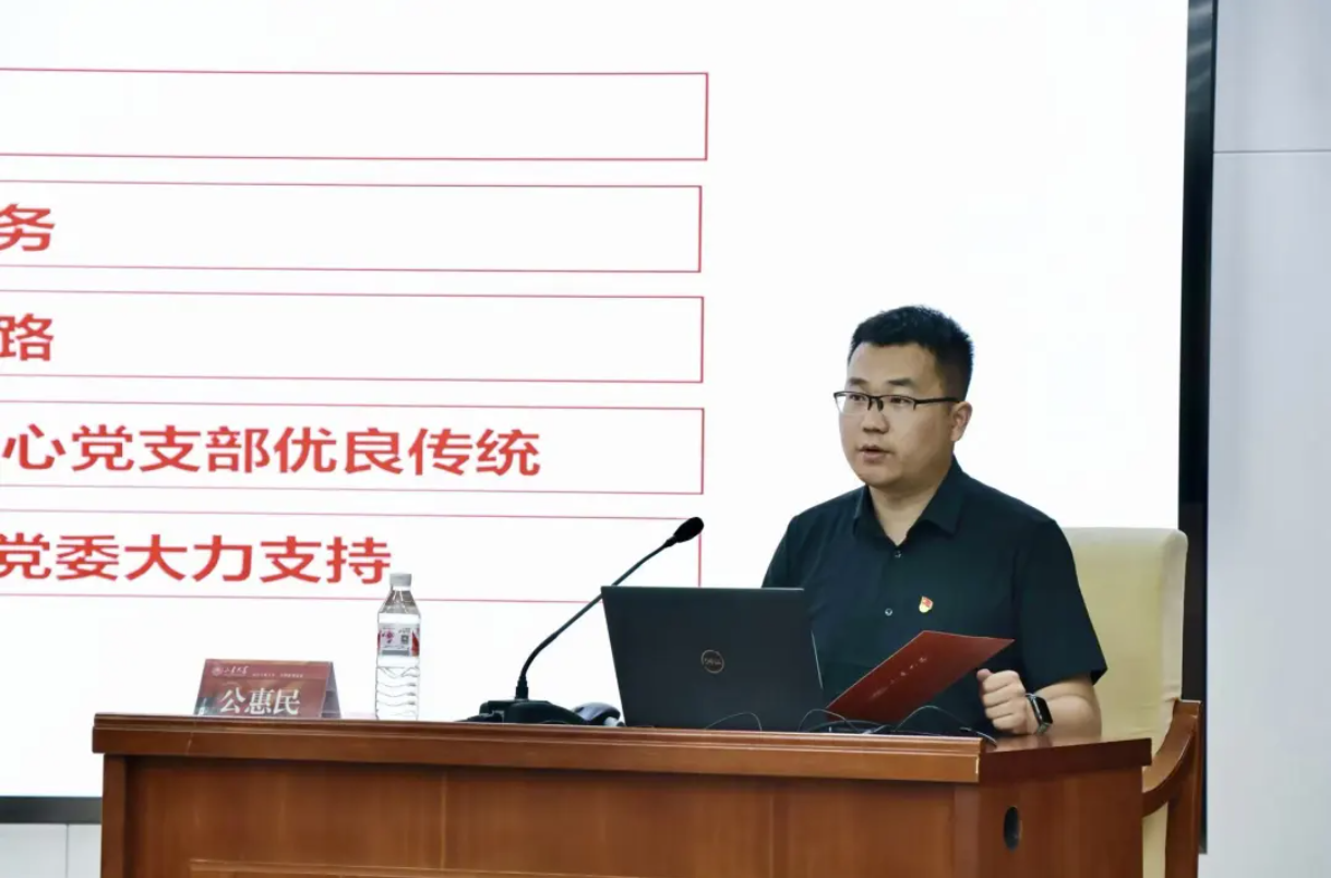 山東大學(xué)土建與水利學(xué)院巖土研究生黨支部書記公惠民受邀擔(dān)任培訓(xùn)班主講人,以“黨建引領(lǐng)促科研,實(shí)干報(bào)國顯擔(dān)當(dāng)”為主題作研究生黨支部建設(shè)經(jīng)驗(yàn)分享。公惠民從如何做好黨支部規(guī)范化建設(shè)、如何通過高質(zhì)量黨建引領(lǐng)高質(zhì)量科研、如何創(chuàng)新黨建特色工作模式等方面與參訓(xùn)學(xué)員展開交流探討。