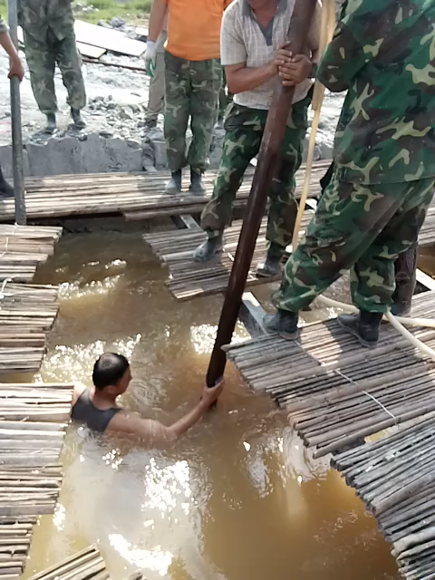 項(xiàng)目開工后,科研團(tuán)隊(duì)開始披星戴月、不分晝夜地工作,因?yàn)殂@探、注漿工作必須提供精細(xì)的技術(shù)支持,密切關(guān)注各出水點(diǎn)的連通情況,所以即使是后半夜,工地也必須有人盯班。5月初,三道阻水帷幕已經(jīng)完成,通過測量監(jiān)測,減水量達(dá)到了1萬立方米/天,但這與合同中的4.2萬立方米/天減水量相差甚遠(yuǎn),此時(shí),經(jīng)費(fèi)已經(jīng)花費(fèi)過半,各種材料即將耗盡。華潤集團(tuán)開始擔(dān)憂項(xiàng)目的成敗問題,相關(guān)領(lǐng)導(dǎo)多次視察,無形中給科研團(tuán)隊(duì)施加了很大的壓力。為了盡快解決企業(yè)的后顧之憂,李海燕教授在40度高溫下,親臨現(xiàn)場指導(dǎo)。為了將引水管安放到最合適的位置,課題組中的一名黨員同志,不畏寒冷,親自下水安裝管道,在水中連續(xù)摸索一上午,出水時(shí)凍得已嘴唇發(fā)紫。這些事跡,充分說明了以李海燕教授為領(lǐng)導(dǎo)的廣西平南課題組堅(jiān)韌意志,以及面對困難勇往直前的勇氣,但成員們心中清楚,投入和成效并非完全的線性關(guān)系,阻水帷幕看似效果微弱,但的確是必不可少的,也是后續(xù)工作的基礎(chǔ),經(jīng)過緩慢的量變過程,質(zhì)變往往在最后的瞬間完成。但科研團(tuán)內(nèi)部也面臨一大難題,阻水帷幕的效果證明,尋找Y01涌水點(diǎn)的關(guān)鍵通道并進(jìn)行封堵是勢在必行的,但問題是近半年來一直沒有找到它的準(zhǔn)確位置,接下來該采取什么措施呢?