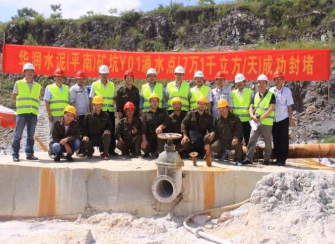 最終經(jīng)過(guò)近一年的努力,課題組成功封堵了日涌水量為7.12萬(wàn)m3/d的涌水點(diǎn),解決了困擾華潤(rùn)水泥(平南)公司的問(wèn)題,保證了公司的正常生產(chǎn)。李海燕教授領(lǐng)導(dǎo)的課題組也得到了華潤(rùn)水泥的肯定,并在礦坑觀景平臺(tái)立碑以示對(duì)山東大學(xué)平南課題組的感謝。在解決重大工程問(wèn)題的同時(shí),課題組始終把科學(xué)研究放在重要重要位置,取得了一系列卓有成效的研究成果,對(duì)巖溶充水礦床的治理,做出了巨大貢獻(xiàn)。