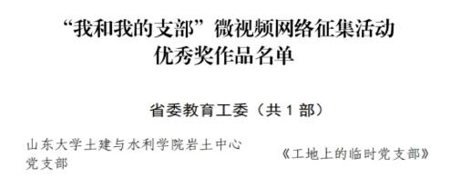 近日,在慶祝中國共產(chǎn)黨成立100周年之際,中共山東省委組織部在全省基層黨組織中開展“我和我的支部”微視頻網(wǎng)絡(luò)征集活動,共評選出100部優(yōu)秀作品,土建與水利學(xué)院巖土中心黨支部《工地上的臨時黨支部》作為省委教工委唯一的推薦作品入選。
